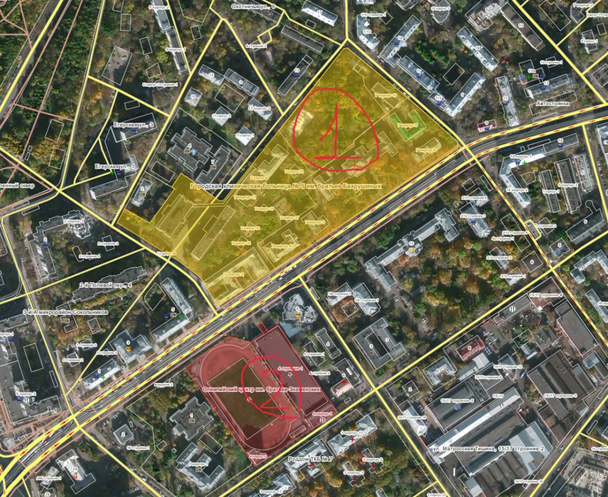 ПИК оценивает возможность застройки ЗУ "Стромынка, 7" (1). На данный момент там расположена больница №5 с архитектурным ансамблем «Больница для хронических больных им. братьев Бахрушиных». В Москве сносить больницы, особенно перед выборами, чревато.